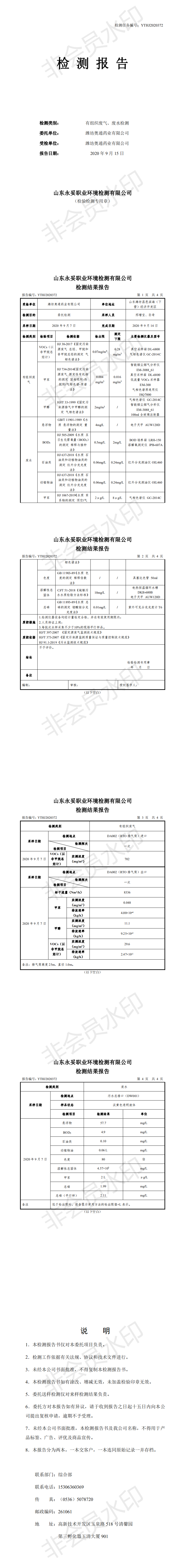 濰坊奧通藥業(yè)有限公司八月環(huán)境檢測報告