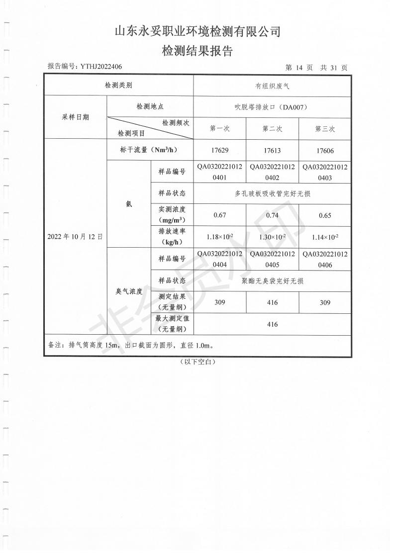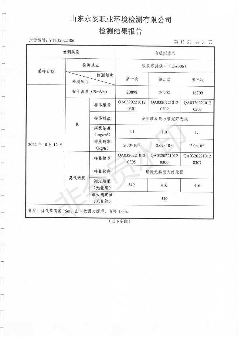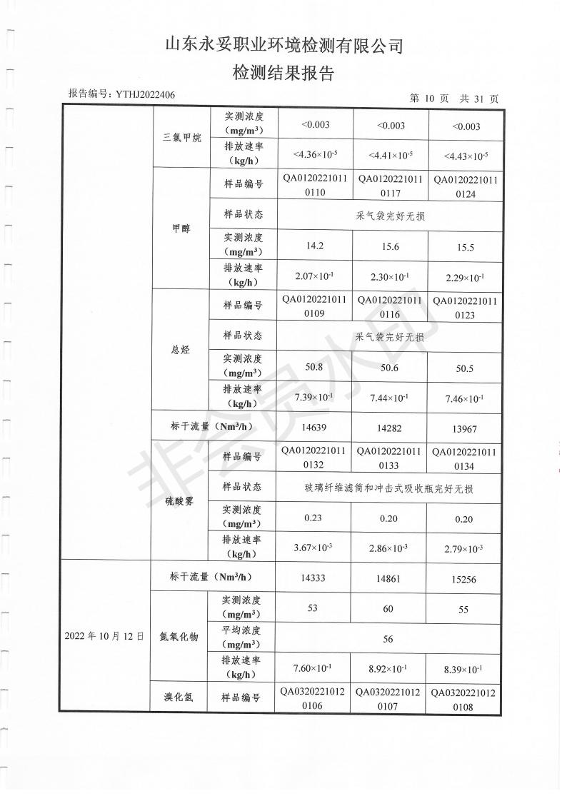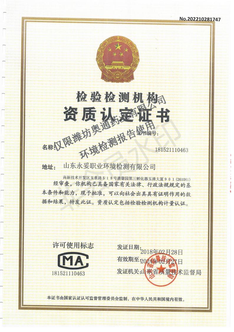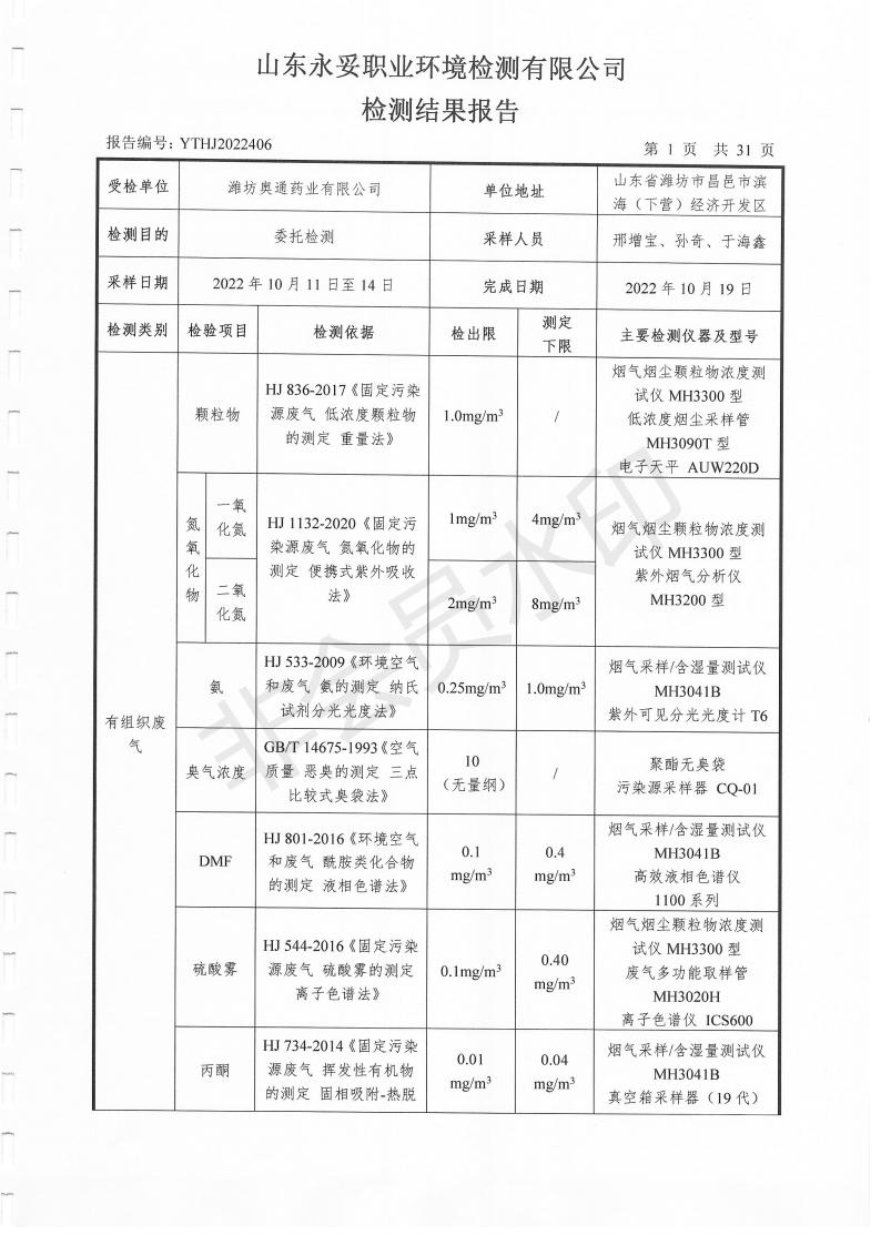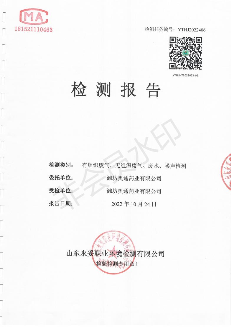 濰坊奧通藥業(yè)有限公司十月環(huán)境檢測報(bào)告