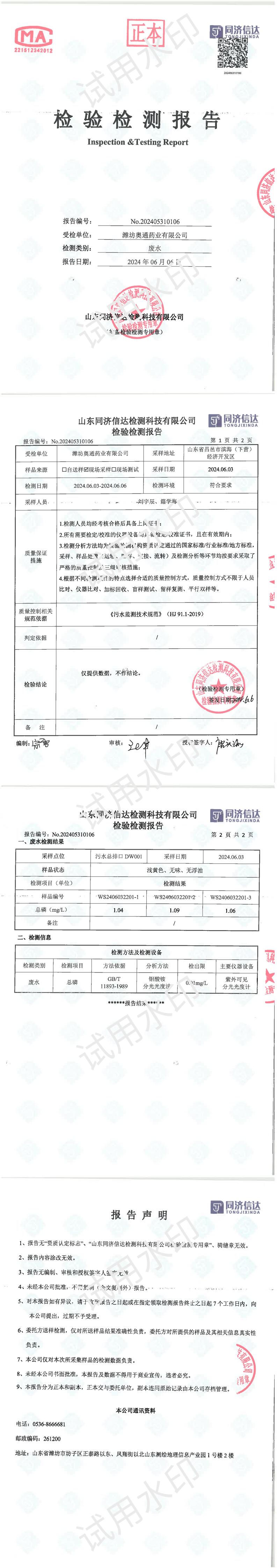濰坊奧通藥業(yè)有限公司六月環(huán)境檢測報告