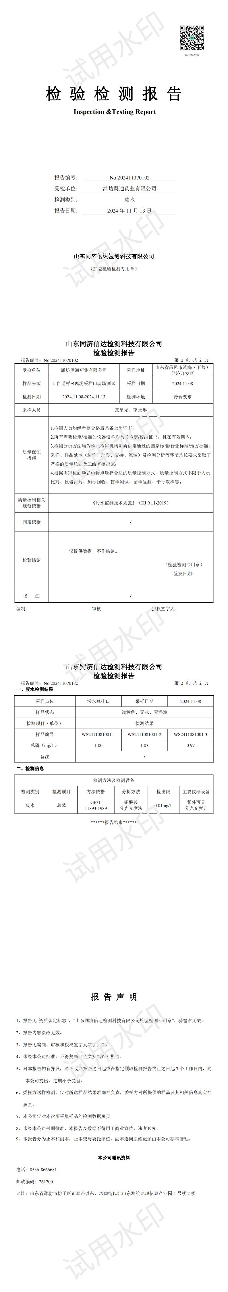 濰坊奧通藥業(yè)有限公司十一月環(huán)境檢測報告
